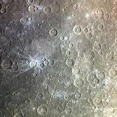 ![]() MESSENGER NAC mosaic showing most of the crater | |