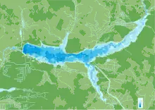 Vileyka reservoir is the largest artificial reservoir of Belarus, second in size to the largest natural lake, Narach. It has a surface area of 64.6 km2, a length of 27 km, a maximum width of 3 km, a maximum depth of 13 m, and an average volume of 238 million cubic meters.[1][2] Its catchment area is 4,120 square kilometers, mineralization of water - 280–320 mg/L.