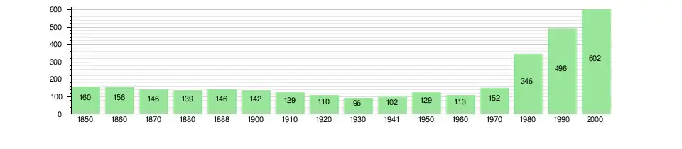 Villars-Sainte-Croix has a population (as of December 2020) of 960.[7] As of 2008, 23.3% of the population are resident foreign nationals.[8] Over the last 10 years (1999–2009 ) the population has changed at a rate of 19.8%. It has changed at a rate of 14.2% due to migration and at a rate of 5.3% due to births and deaths.[9]