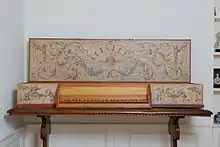 ![]() Flemish virginals by Hans Ruckers, 1583, Antwerp (Paris, Musée de la Musique). Note the inset keyboard placed left of centre. | |