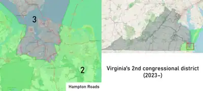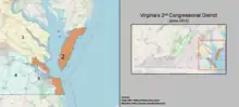 Virginia's second congressional district is a U.S. congressional district in the Commonwealth of Virginia. It currently encompasses all of Accomack, Northampton, and Isle of Wight; all of the independent cities of Virginia Beach, Suffolk, and Franklin; part of the independent city of Chesapeake; and part of Southampton. However, its boundaries have changed greatly over the centuries; it initially encompassed what became West Virginia after the American Civil War. It is considered among the nation's most competitive congressional districts.