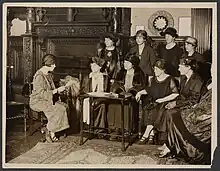 The CWSS organised a thanksgiving Mass when the Representation of the People Act 1918 gave some women the vote, but continued campaigning and speaking out about equal pay for equal work, and extension of the franchise to all women. Some 3% of the financial donors to CWSS were priests.[1] However the CWSS did not get the support of the Church to be called 'Catholic' and as it joined, in 1926, the International Women Suffrage Alliance, led to a change in name to St. Joan's Social and Political Alliance, with Virginia Crawford as its first Chair, urging the organisation to demand votes for women over 21 years old, on the same grounds as men. When eventually equal franchise was achieved, the St Joan's Alliance organised a thanksgiving Mass in Westminster Cathedral and a procession including Catholic and Protestant suffragists, Millicent Fawcett and Charlotte Despard, and a two-and-a-half-year old girl representing the future.[1] By this time Crawford was in her sixties, and went to Paris to meet with Catholic suffragists from Peru, Austria, the Ukraine as well as France.[1] The organisation also operated or had sister groups in Scotland, Ireland and Croatia.[1] Crawford and St Joan's Alliance leaders expanded the scope of the organisation to international cooperation on women's rights.
