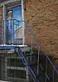 During four summer seasons (2002-2005), Ovchinnikov, a self-taught artist, made about a hundred paintings[5] on the houses of Borovsk, creating on the dull blank walls of city buildings, boarded-up windows, fences, about 90 different subjects (his famous countrymen, churches, historical events, genre scenes: a girl walking on the pipe of a pipeline, an old woman with a bucket near a downspout, a naked boy knocking at the locked door, a man with a giant cucumber in the hands, an old man in his window reading «Times», etc.). Themes are chosen and selected with the help of his wife. Many of the paintings are accompanied by poems written by Elvira.
