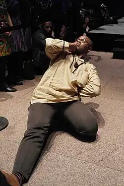 Dance competitions often involved throwing "shade," or subtle insults directed at one another in order to impress the judges and the audience. The competition style was originally called "presentation" and later "performance."[5] Over the years, the dance evolved into the more intricate and acrobatic form that is now called "vogue".[2][3][6]