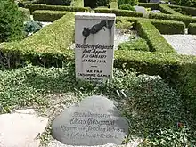 Voldborg Antoinette Brøns Ølsgaard died in Aarhus on 1 October 1939 and was buried in the churchyard at Mørke. Her husband designed her gravestone.[3]