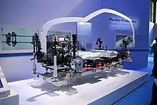The Golf GTE plug-in hybrid is driven by two power sources: a 1.4-litre 110 kW (150 PS; 148 hp) TSI direct-injection petrol engine and a 75 kW (102 hp) electric motor.[62] Together, they combine to produce power of 150 kW (204 PS; 201 hp) and 350 N⋅m (258 lb⋅ft) of torque, with a theoretical range of 827 km (514 mi).[63] Using the electric motor alone, the GTE is capable of speeds of 130 km/h (81 mph). With the TSI engine as well, the Golf GTE can accelerate from 0-100 km/h (62 mph) in 7.6 seconds and on to a top speed of 215 km/h (134 mph). The Golf GTE shares the basic powertrain hardware with the Audi A3 Sportback e-tron but the software controls are different.[64] The Golf GTE also shares the same plug-in hybrid powertrain with the Volkswagen Passat GTE, but the Passat has a larger 9.9 kWh Li-ion battery pack.[65]
