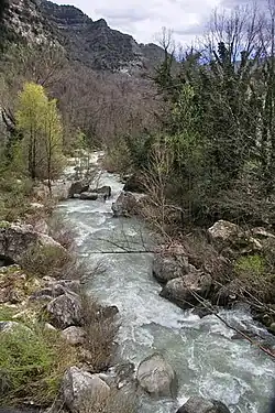 The Vomano (Latin: Vomanus)[1] is a 76 km river, which is in the Abruzzo region of Italy. Its source is near Monte San Franco in Gran Sasso d'Italia and Lago di Campotosto in the province of L'Aquila. The river crosses the border into the province of Teramo and flows northeast near Montorio al Vomano and Basciano. The Fucino flows into the Vomano south of Crognaleto and the Mavone flows into the Vomano near Basciano.[2] It enters the Adriatic Sea near Roseto degli Abruzzi.