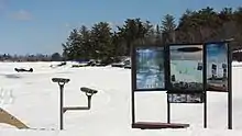 The park is snow-covered from late November until early April. An ice road on Rainy Lake is plowed and marked from the visitor center's boat ramp, heading toward Cranberry Bay or around Dryweed Island, depending on ice conditions. Available activities include lake driving, snowmobiling, cross-country skiing, winter camping, ice fishing and snowshoe hiking. Snowmobiling is limited to the frozen lake surfaces and the Chain of Lakes Scenic Trail through the center of the Kabetogama Peninsula. Trail maps can be obtained from the visitor centers.[9]