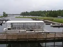 Kettle Falls is located between Lake Namakan and Rainy Lake, and is the location of the Kettle Falls Hotel. The hotel was constructed in 1910 by timber baron Ed Rose and operated as a hotel and resort to this day. It was placed on the National Register of Historic Places in 1976. Kettle Falls can only be reached by boat in the summer months and is one of the few places in the lower forty-eight states where one looks south into Canada.[28][29]