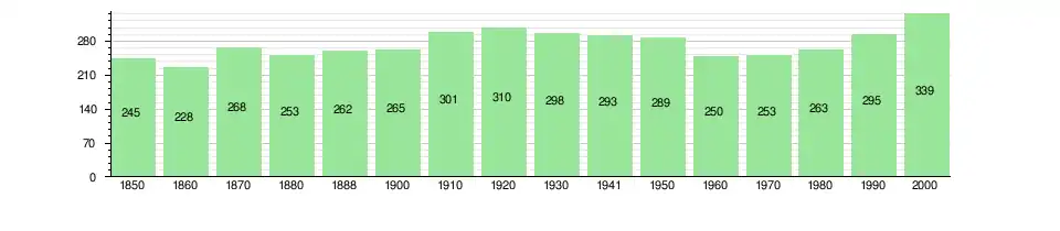 Vuarmarens had a population (as of December 2020) of 610.[4] As of 2008, 4.0% of the population are resident foreign nationals.[5] Over the last 10 years (2000–2010) the population has changed at a rate of 22.6%. Migration accounted for 15%, while births and deaths accounted for 8.9%.[6]