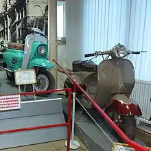 The VP-150 (Russian: ВП-150) was an unlicensed copy of the Vespa 150, first built in 1956. It was constructed of thicker steel than the Vespa to cope with the poorer Russian roads. Other minor differences included thicker tyres (10x4.0 instead of 10x3.5) and an adjustable headlamp. A glovebox was also incorporated under the front seat. 300,000 models were constructed before production terminated in 1965 after complaints from Piaggio.[1]