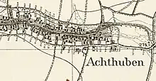 The village was founded, probably in the 13th century, as a forest village that was one of several German settlements in Upper Silesia.[3] The region was part of the Duchy of Poland and subsequently the Kingdom of Poland until the 14th century, when it was incorporated into the Kingdom of Bohemia. In 1742 it became part of the Kingdom of Prussia and in 1871, of the German Empire. Achthuben was the property of a monastery in Nysa (Neisse) until the early 19th century.[4] It had a population of 395 in 1845,[4] 366 in 1885,[5] and 243 in 1933.[6] On January 4, 1939, it became part of Schnellewalde, now Szybowice.[6] In 1945, after the defeat of Germany in World War II, it again became part of Poland. By an act of the Sejm, it was renamed to Włóczno in June 1948.[7]