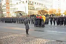 Wachbataillon personnel executing a Großes Ehrengeleit at the state funeral of former Chancellor of West Germany Helmut Schmidt on 23 November 2015.