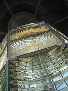 The lantern is a 3.66 metres (12.0 ft) diameter Chance Brothers device with a 920-millimetre (36 in) focal radius 8-panel catadioptric lens from the same company. It rotates once every 60 seconds on a mercury float pedestal. It is powered by 240-volt electricity from the island's mains supply and has a 2.5kVa diesel backup system.