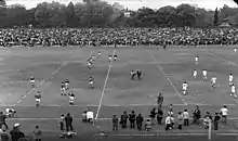 Wales' first home international was played in 1882 at St Helen's Ground in Swansea.[149] In the 1880s and 1890s, home Welsh internationals were played at Cardiff, Swansea, Newport and Llanelli.[150] Swansea continued to be used as an international venue until 1954, when Cardiff Arms Park became Wales' primary home venue.[151][152] Cardiff Arms Park first had a stand erected in 1881, and continued to expand its seating that decade.[153] Crowds continued to grow and in 1902 in Wales' match against Scotland a world record 40,000 spectators paid to see the match.[154] In 1911, the owners of the Arms Park, the Marquess of Bute's family,[155] confirmed Wales' tenure and during the 1920s and 1930s, Wales gradually gained increasing control.[156] A new stand was built at the park in the 1933–34 season, which increased the grounds' capacity to 56,000.[157]