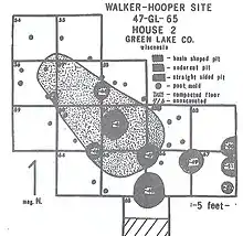 The Walker-Hooper Site (47-GL-65) is a multicomponent prehistoric site complex located on the Grand River in the Upper Fox River drainage area in Green Lake County, Wisconsin. It consisted of at least 2 village sites and several mound groups (all of which are destroyed today). It was excavated by S.A. Barrett under the auspices of the Milwaukee Public Museum in 1921 and again in 1967 by Guy Gibbon of the University of Wisconsin-Milwaukee. The major component of the site is an Upper Mississippian Oneota palisaded village. Other components were also present, mainly Late Woodland but also including Archaic, Early Woodland and Middle Woodland.[1][2]