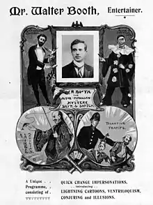 Walter Robert Booth (12 July 1869 – 1938) was a British magician and early pioneer of British film. Collaborating with Robert W. Paul and then Charles Urban mostly on "trick" films, he pioneered techniques that led to what has been described as the first British animated film, The Hand of the Artist (1906).[1][2] Booth is also notable for making the earliest film adaptation of A Christmas Carol with the silent film Scrooge, or, Marley's Ghost (1901).[3]