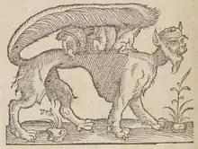A report written by the Captain of Inchkeith, Robert Anstruther, and a chronicle called the Diurnal of Occurrents,[110] mention that Mary wore male clothing on her ride from Borthwick Castle to Dunbar Castle in 1567, and she is sometimes said to have been disguised as a page. Mary wore a short red petticoat at knee-length at Dunbar the next day before the battle of Carberry Hill. Anstruther's report written in French describes another item, but the words appear to be illegible.[111] According to George Buchanan, Mary changed into a short skirt at Fawside Castle on the morning of 15 June 1567 before the battle of Carberry. She left some clothes behind in a chest, including a gown of black "estamet" (stemming) embroidered with grains of jet, a crimson camlet dress, a plaid, a great cloak, and a hat embroidered with gold and silver, with a panache. The black gown was "faict a la souvaige", perhaps meaning Highland fashion. Mary kept her linen in a small case covered with sea wolf's skin, une petite mallette de poil de loup marin.[112]
