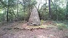 According to legend, the community was settled by survivors of a shipwreck who waded ashore centuries ago on the remote and uninhabited stretch of beach and decided to stay.[2] The village's Methodist church and several other structures were built using cypress wood that washed ashore from schooner John S. Wood that ran aground with a load of lumber and broke apart during a storm in 1889.[3] By the turn of the 20th century Wash Woods was home to two lifesaving stations, a grocery store, two churches, and a school. Three hundred people once lived there, working as fishermen, farmers, hunting guides, market hunters, and as lifesavers patrolling the beach and manning lifeboats to rescue shipwrecked sailors.[4]