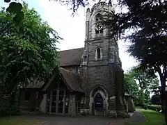 The oldest part of the village is centred on the western end of Old Church Road and was designated a conservation area in 1983.[3] This area overlooking the crossing of the River Tame formed the original medieval settlement of Overton and has seen the discovery of pottery remains dating back to the 12th century.[3] It contains a number of listed buildings including The Chestnuts, a 15th-century house with late 16th or early 17th century additions that may have been the old manor house; and Wakefield House, a timber framed house with a 17th-century main block and a 16th-century cross wing.[3] Water Orton was originally part of the parish of Aston, forming a narrow extension of the parish along the River Tame to the north of the parish of Coleshill.[4] Until the 14th century Water Orton's inhabitants attended ordinary church services at the chapel of ease in Castle Bromwich.[4]