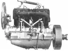 Still another smaller machine, the model S, was introduced for 1911, this engine cast in pairs and with two camshafts located within the crankcase.[1] Dual ignition continued in use, but with Remy magneto instead of Bosch. The large, powerful six-cylinder chassis was discontinued after the 1910 season.[1]
