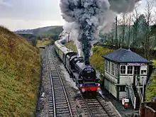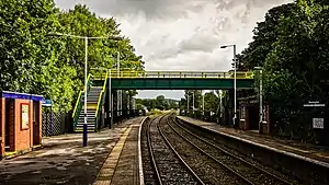 Much of this activity ended with the withdrawal of local stopping trains on the Carnforth line in 1960 (though it remained in use for through services) and the closure of the Lancaster line to passengers in January 1966.[2] The latter was then closed to all traffic the following year and subsequently lifted, although the abandoned trackbed can still be seen. The original station buildings have also been demolished and replaced by shelters, although the signal box remained in use as the last remaining block post on the line until 1988 – it was then closed & permanently "switched out" but was not formally abolished and removed until 2006.