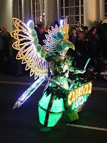 The local people who dressed up and took part in the event were known as Masqueraders or Features - terms still used today to describe the parade participants.[1]