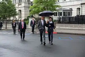 West Executive Avenue is a short street that runs along a north–south axis adjacent to the White House. It sits between the White House and the Eisenhower Executive Office Building and runs parallel to East Executive Avenue, which, in 1986, was also permanently closed to public traffic.[2][3][4] On its northern end it intersects Pennsylvania Avenue, a portion of which was permanently closed to public traffic in 1995.[5]