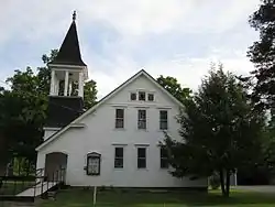 West Fulton Methodist Church is a historic Methodist church located in Fulton, Schoharie County, New York. It was built in 1906, and is a two-story, rectangular, Late Victorian style frame church. It has a broad front gable roof and sits on a limestone foundation. The front facade features an asymmetrically placed multi-stage bell tower. The interior is based on the Akron plan.[2]: 5–6