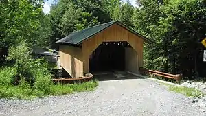 The West Hill Covered Bridge, also known as the Crystal Springs Covered Bridge[2] is a wooden covered bridge that crosses West Hill Brook on Creamery Bridge Road in Montgomery, Vermont. It is one of six surviving 19th-century bridges built in Montgomery by the brothers Sheldon & Savannah Jewett. It was listed on the National Register of Historic Places in 1974.[1]