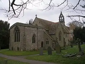 A church has been located on the site of St. Helena's since Saxon times.[3] The oldest part of the present church is the Norman north wall[3] which dates back to the 12th century.[13] The nave is noted for being unusually long.[3] The chancel was enlarged and the south aisle built, to create a chapel, in the 14th century.[3] The church does not have a tower but does have a 19th century gabled west bellcote which houses two bells.[13] The gabled south porch dates back to the 19th century.[13] The church was extensively restored and the organ chamber rebuilt in 1878.[13]