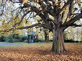 The lych gate at the entrance to the churchyard of St. Helena's church dates back to 1919 and serves as a World War I memorial; it is a timber construction with a roof of Swithland slate.[3]
