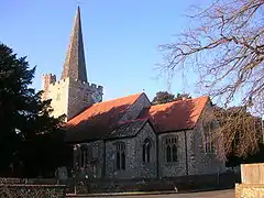 Westbourne contains 66 listed buildings some dating back to the 16th Century,[3] though written evidence of habitation can be found in the Domesday Book of 1086.[5][6] The medieval Church of St John the Baptist is notable for its fine yew avenue, which is apparently the oldest in England, and walled graveyard. Nicholas Levett, a native of Petworth and fellow of Balliol College, Oxford, was longtime minister of St John the Baptist. He was buried in Beckley, Oxfordshire, in 1687.[7]