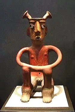 - ↑ See these photos from Flickr for an example of a mask-wearing Colima dog. Another is part of the Stafford Collection at the Los Angeles County Museum of Art (see Sculpture of Ancient West Mexico, Nayarit, Jalisco, Colima).