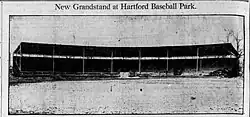 The first Atlantic League game in Hartford was played on April 23, 1896, with Hartford defeating New Haven 16-11.[2] The final Eastern League game in Hartford was a doubleheader on September 11, 1920. Hartford won both games from Waterbury.[3]