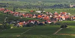 Weyher in der Pfalz is a municipality in Südliche Weinstraße district, in Rhineland-Palatinate, western Germany with a stable population of around 500, populated for over 1200 years. It is situated in the foothills of a chestnut tree forest, overlooking the Rhine valley. It is known for its wine production and there are holiday apartments in the village. Ludwig I of Bavaria kept a summer apartment in the cliffs directly overlooking the village, which opens quarterly for village celebrations.