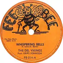"Whispering Bells" is a song performed by The Del-Vikings (a.k.a. the Dell-Vikings).[1] It reached #5 on the U.S. R&B chart and #9 on the U.S. pop chart in 1957.[2] Kripp Johnson was the lead vocalist on this recording.[1] Clarence E. Quick, who was the bass vocalist in the group, wrote the song.
