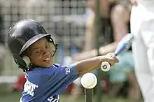 The principal difference between tee-ball and softball or baseball is that the child hits the ball off of a tee; the ball is not pitched. Thus, tee-ball allows a young child to learn the skills of batting, catching, running the bases, and throwing, while making it both easier to hit the ball and less likely for batters to be injured since they do not need to dodge wayward pitches.