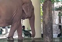 As of 2023, Myanmar possesses ten captive white elephants, which are in the custody of the Ministry of Natural Resources and Environmental Conservation's Forest Department.[9][4] Three white elephants are currently held in a pavilion near the Kyauktawgyi Buddha Temple in Yangon.[17][18][4] The rest are kept at Uppatasanti Pagoda in Naypyidaw, the national capital.[4] The captivity of white elephants has been criticised by observers, including historian Than Tun.[19] Burmese white elephants are kept in inhumane conditions, shackled for 22 hours a day and housed in small open-air pavilions.[9]