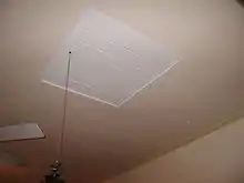 A whole house fan is a type of fan, commonly venting into a building's attic, designed to circulate air in an entire home or building. The fan removes hot air from the building and draws in cooler outdoor air through windows and other openings. While sometimes referred to as an "attic fan", this term properly refers to a powered attic ventilator, which exhausts hot air from the attic to the outside through an opening in the roof or gable at a low velocity.[1]