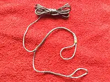 A whoopie sling is an easily adjustable rope sling designed for tree pruning or tree removal.[1][2] The whoopie sling works by wrapping the sling around the trunk of a tree or a heavy load bearing limb and pulling the end of the rope within the sling through a spliced choker. By adjusting the size of the eye in the rope through the choker the user is able to adjust the length of the sling constricting around the tree without needing knots.
