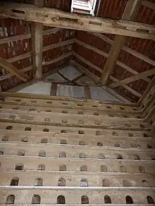 Wichenford Court, a partly moated manor house, has a timber-framed 17th-century dovecote, with 557 nesting boxes,[12] now in the care of the National Trust.[13] The house and its grounds were restored after 1969, when the last tenant farmer, Mr Pugh, was fatally injured in an accident at work. This prompted the owner Lt. Col. Patrick Britten and his wife Elizabeth to decide to live in the house as their main residence.[14]