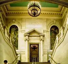 Conversely, "even from the very entrance [of the building] one will catch a glimpse in the distance of the portrait of young Harry Widener on the further wall [of the Memorial Rooms], if the intervening doors happen to be open."[43]:325