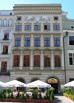 Wierzynek is a restaurant located at the Main Square of Kraków Old Town. It occupies four floors and has a capacity of 200 guests.[1] There are eight separate dining rooms including the Italian Pompeii Rooms, the Tatra Room, The Clock Room, the Knights Room and the Chamber of Imagination.[2]