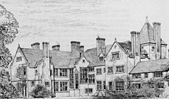 The house is in Jacobethan style, constructed in red Ruabon brick on a limestone plinth with sandstone dressings, and a Ruabon tile roof. It has an L-shape with a main north wing and a west service wing. The tower, with its pyramidal roof, rises from the west wing. Projecting from the angle between the wings is the canted staircase window. The main entrance is at the right side of the end of the gabled north wing, under an oriel window.[1][2]