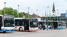 PostAuto Schweiz, WilMobil and RegioBus bus lines depart from the bus station in front of the station building.[5][6][7]