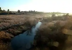 The Wilge River has its origin about 15 km WNW of Leandra, in the highveld grasslands between this town and Springs, Gauteng.[2] It flows roughly northwards until it is joined by its main tributary, the Bronkhorstspruit, that joins its left bank about 25 km downstream of Bronkhorstspruit town. Then it flows in a northeastern direction until it joins the Olifants about 12 km upstream from the head of the Loskop Dam reservoir.[3]