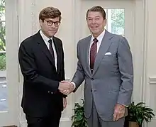 Barr with President Ronald Reagan in the Oval Office in 1983