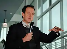 ![]() Speaking at a Walking for Health volunteers meeting at the National Marine Aquarium, Plymouth, England on 14 January 2010 | |