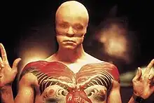 The film versions of the novel Red Dragon, Manhunter (1986) and Red Dragon (2002), include images of Blake's The Great Red Dragon and the Woman Clothed in Sun. In the first film the character played by Tom Noonan sports a tattoo on his chest based on Blake's image of the dragon hovering over the woman. The second film has the character (played by Ralph Fiennes) display a stylised version of the dragon tattooed on his back.[23]